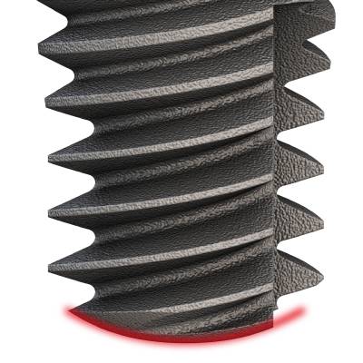 - Compression of bone for high primary stability even in soft bone